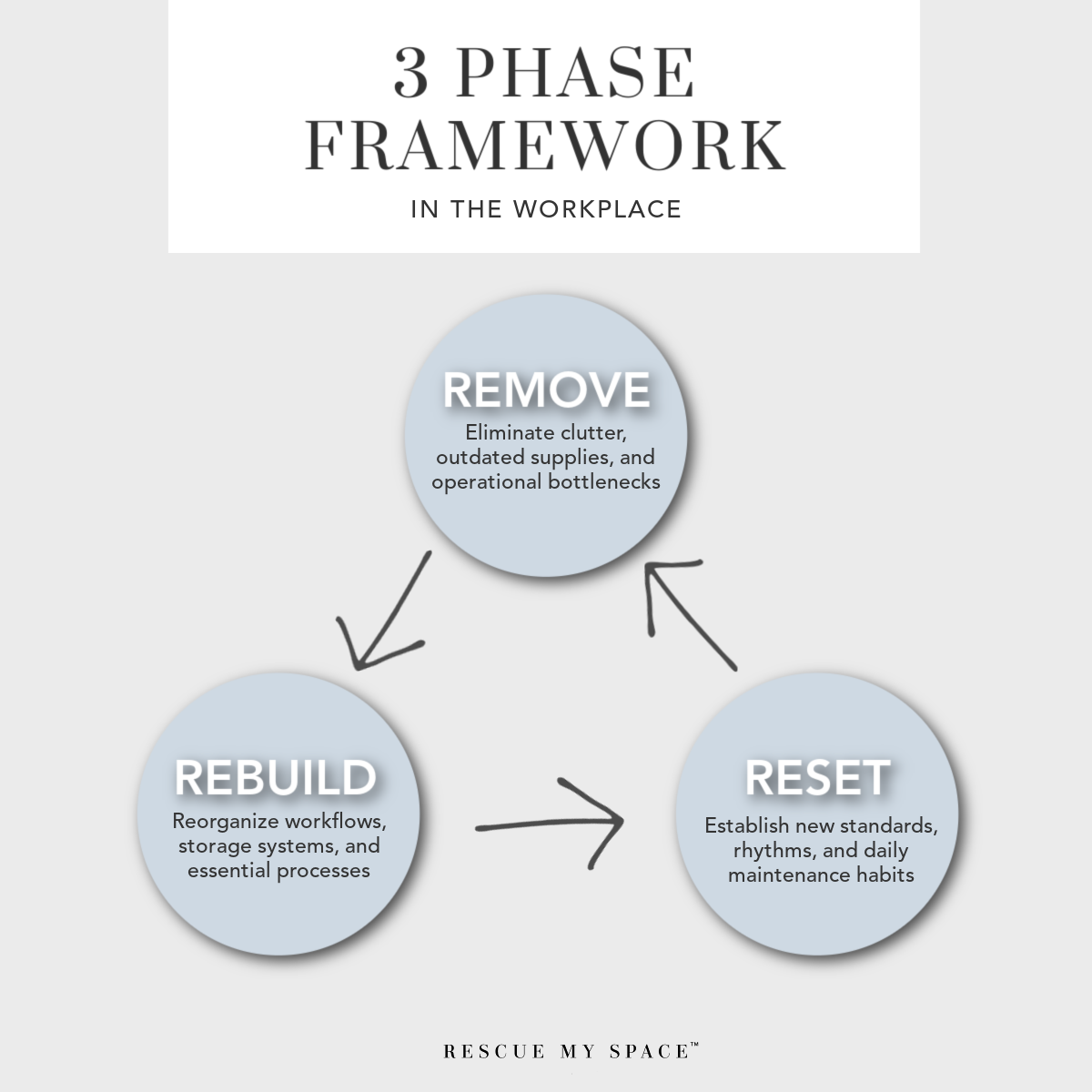 Together, 5S and The Rescue My Space Workplace Framework™ create seamless harmony between operational excellence and human productivity. The result is a workplace that is functional, sustainable, and inspiring for the people who work in it every day.