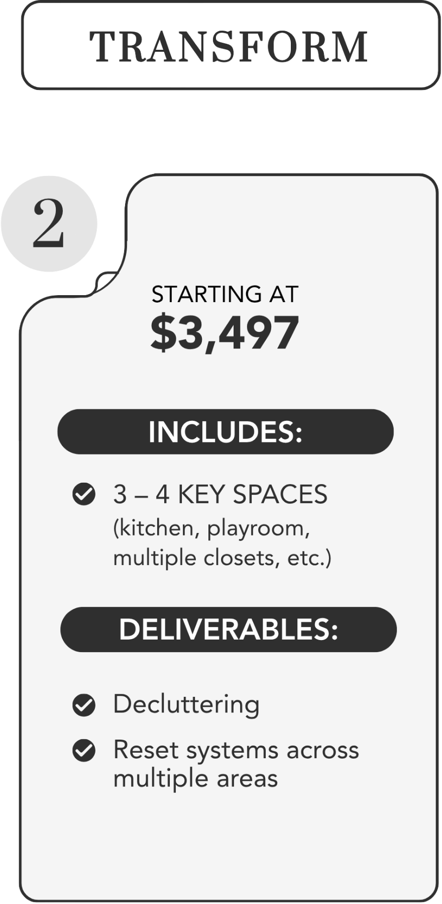 Explore our curated experiences below. Each option is tailored to meet your needs, lifestyle, and goals, whether you’re seeking a hands-on reset, expert guidance, or full project management.